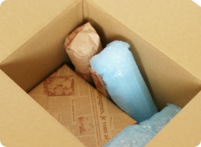 段ボールの底にはエアーキャップと新聞を敷き詰めています。