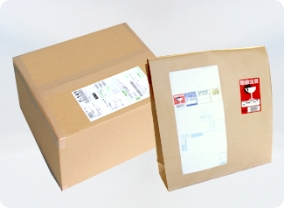 商品の大きさに応じて無地の袋または段ボールに入れて梱包します。