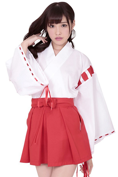 願い事があるなら、まずはお祈りしてね!白着物に赤のパイピングリボンが印象的な、巫女さんのコスチューム。袴風にアレンジされたミニスカートが可愛いらしい巫女さん衣装で、あなたも夢のなかの巫女ちゃまに大変身!