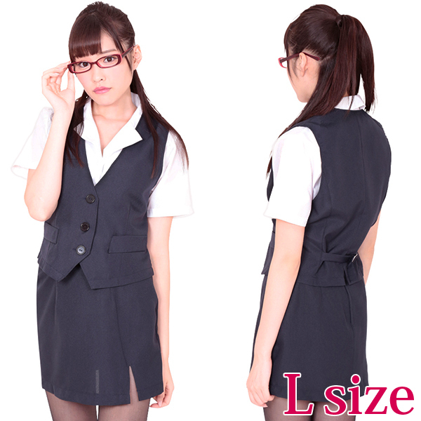 紺と白の定番オフィスレディ風セクシーコスチューム(L)。