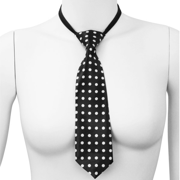 モノクロカラーがシンプルで上品なドット柄ネクタイ。人気の高いドット柄をネクタイに取り入れ、媚びない可愛さの中に、クールでキリッとした印象をプラスしました。ファスナー式で着脱が簡単にできる、簡易装着タイプのネクタイです。※破損の恐れがあるので、着脱時はファスナーのスライダー(可動部)を立てて抑え、本体を上下に移動させて下さい。