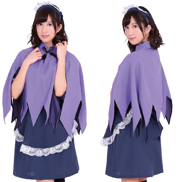 ゴシック調の古い洋館が似合いそう!ミステリアスな紫のマント付きメイドコスチューム(M)。