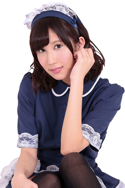 丸襟が可愛いワンピースとエプロン・カチューシャは、ネイビー×白フリルでエレガントに。