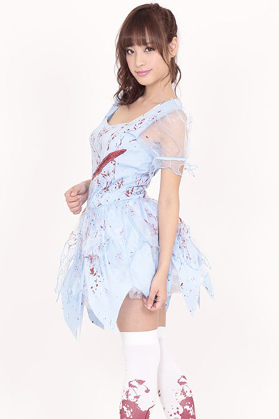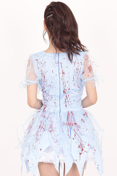 ●キュートな水色カラー●スカート部分はオシャレなカッティングデザイン●血しぶきが飛び散ったようなデザインが恐怖感を与えます。