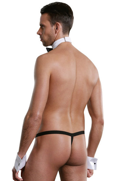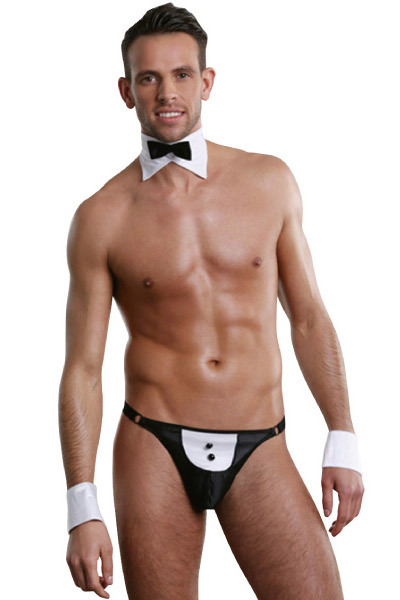 ●黒×白のシックなバイカラー仕様●タキシードデザインのGストリング●蝶ネクタイが可愛いアクセントに●付け襟・付けカフスもセット。