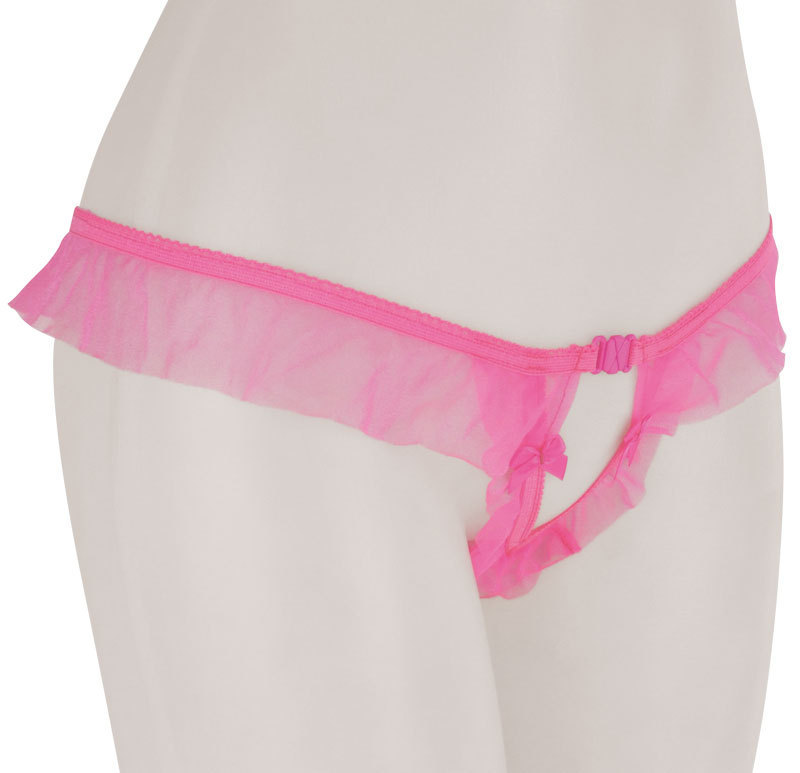 クロッチに大人の秘密♪ひらりと舞うピンクシースルーフリルのオープンショーツ。
