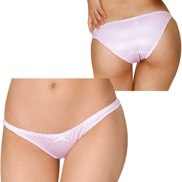 スルリとした履き心地!美しい見た目のオープンハーフバックショーツ。●優しいパールピンクカラー●光沢感のあるフェリカ生地を使用●フロント:小さなリボン付き●クロッチ部分にスリットあり●お尻がちょっぴりはみ出すハーフバック●ウエスト&脚周りはしっかりフィットのゴム仕様●日本製・Mサイズ。至って普通のショーツと思わせつつ、実は大胆なオープン仕様!見る人をドキドキさせるセクシーなデザインショーツです。