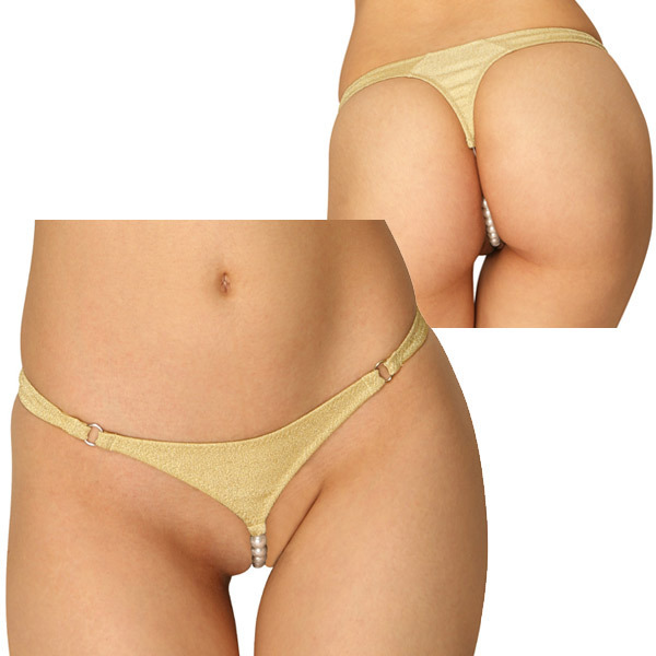上品に輝くラメ入り♪ラグジュアリーなゴールドカラーのパールショーツ。●華やぐゴールドカラー●シャイニーなラメ入り●クロッチ部はパールビーズ●セクシーなTバック仕様。大胆で刺激的な大人デザインのパール付きオープンランジェリー!キラキラと輝くラメ入りゴールドがゴージャスに華を添えてくれます。