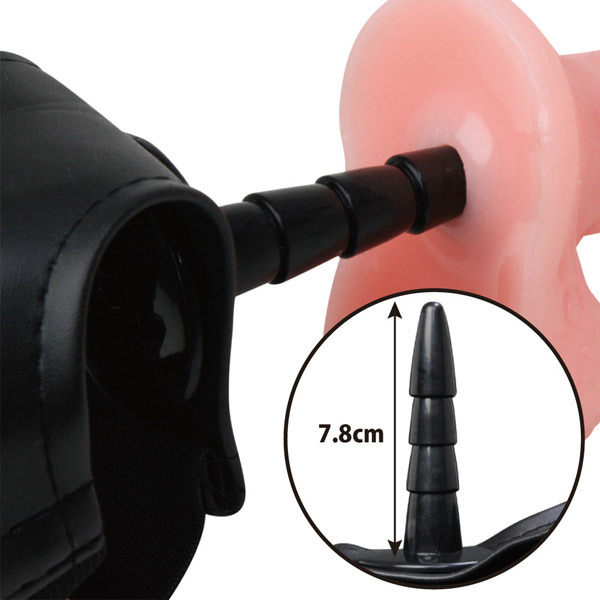 ●合皮素材製の艶めかしいフロント●着脱簡単なウエストゴム(最大1m)●ギンギンな反りの高弾力ディルド●全長18.5cm×最大径4cmのLサイズ●約8cmの棒にディルドを差して固定●棒に抜けづらいギザギザ加工済み●玉付ディルドとして単体使用もOK。
