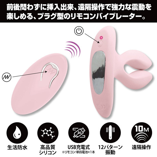 前後問わずに挿入可能!ユニークな二股プラグデザインのリモコンローター「プリティラブ ツーウェイリモートプラグ」。