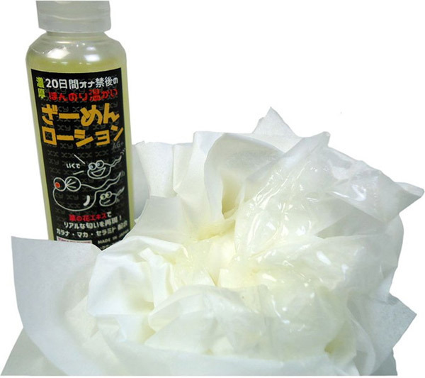 【取扱い注意】栗の花エキス配合でリアルなニオイを追求!オナ禁後の黄ばんだネバネバ精液を見事に再現した「20日間オナ禁後のほんのり温かいざーめんローション」。