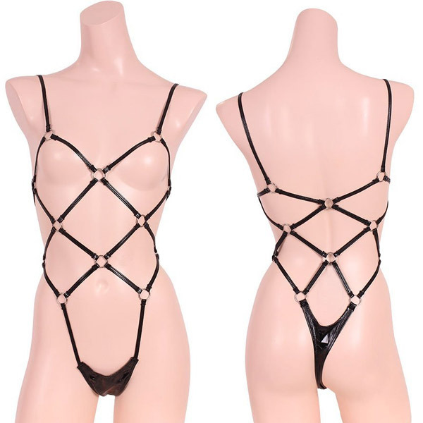 エナメル素材をリングでジョイント!肌に食い込むような亀甲縛り風なのでSM好きにもぴったりのアイテム。