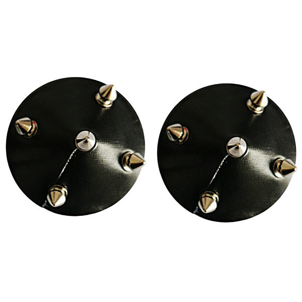 ハードなエナメル調のラウンド型ニップルに、トゲトゲのスタッズを付けたSMチックなデザインは、ショータイムやナイトパーティーにも最適です。