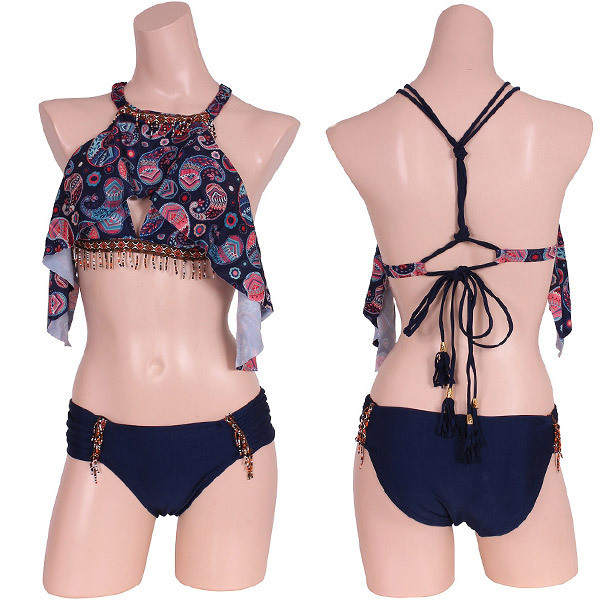 デザインがお洒落!深みのあるネイビーのペイズリーとエスニックビーズの組み合わせで誰よりも印象的に。