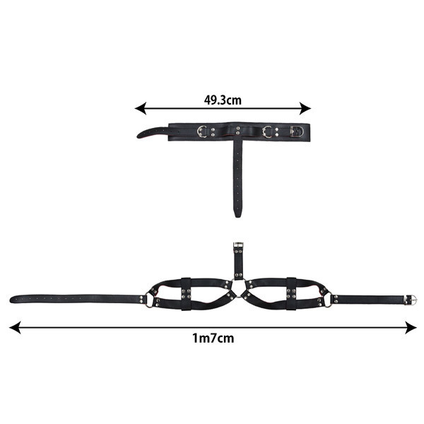 柔らかなフェイクレザーは着け心地よく、ベルト調節が出来るから痕に残りにくい♪胸中央のリングは首輪とバスト部分のベルトを繋ぎ留めており、取り外すことで首輪のみ使用することも可能!首輪にはチェーンや紐を連結させられるリング付きなので、別アイテムと組み合わせての使用も可能です。