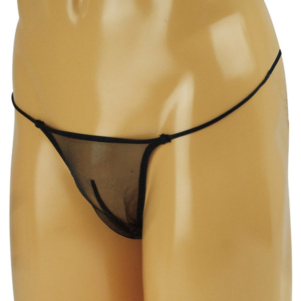 極薄のシースルー生地が大胆な男性用ショーツ。サイドは細い紐仕様でセクシー感UP!バックは半ケツ具合がそそるハーフバック仕様。