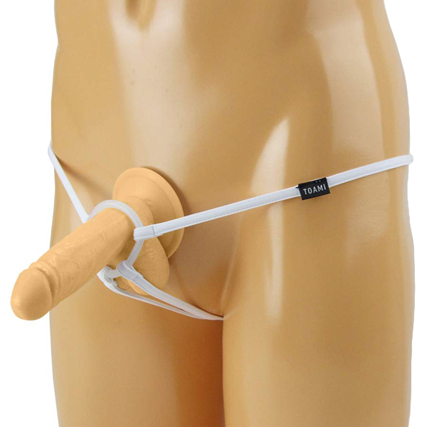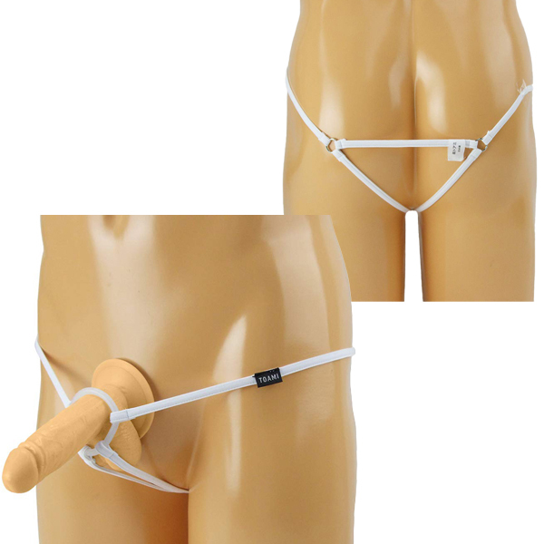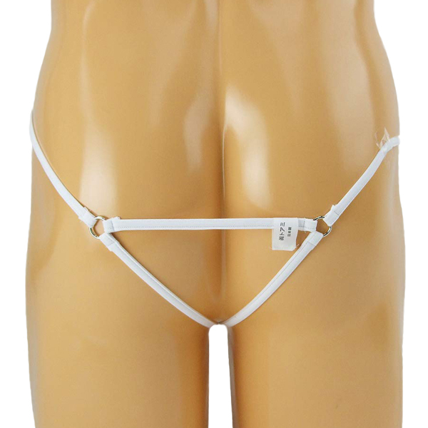 男のシンボルを飾るシリコンリング付メンズ用ストリングショーツ(白)。伸縮性の高いストレッチ素材を使用した紐でシリコン製のリングをガッチリ固定♪締め付けにより男の逞しさを大胆に魅せつける!
