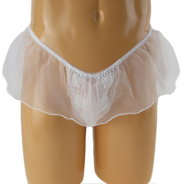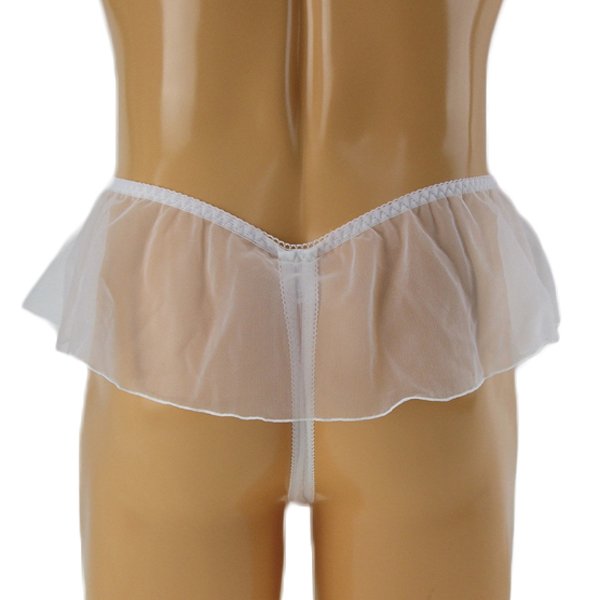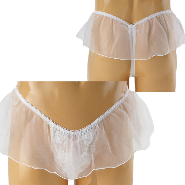 可愛いに憧れる男性に、レース刺繍が美しいスカート一体型のメンズ用Tバック(白)。極薄のレース生地が動くたびにユラリと揺れる♪美しく、そしてエロティックな男性用のセクシーTバック。縫製の丁寧な日本製