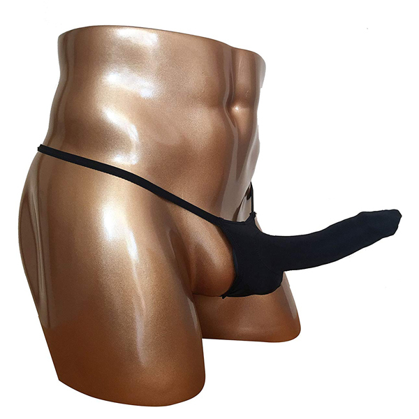 下半身に優しくフィットするサオ収納ポケット付きメンズ用Tバック(黒)。魅力溢れる逞しい貴男の身体を際立たせるセクシーデザインで男の色気を際立たせる!洗濯の際は優しく手洗いするか、網ネットに入れて洗濯してください。