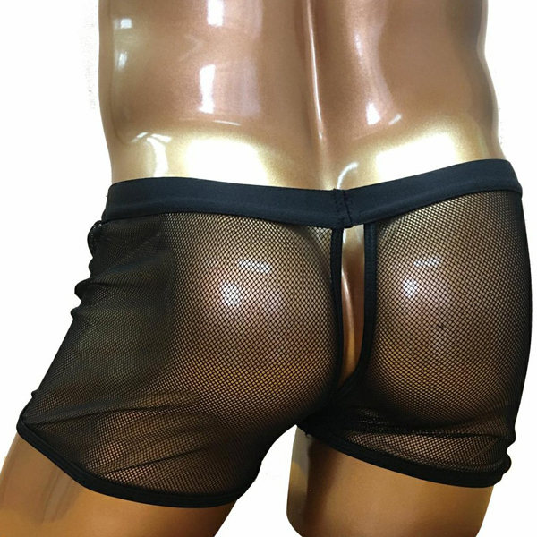 初めてのセクシーランジェリーに最適!トランクスタイプのメンズ用Oバック(黒)。露出度高めの薄手のレース生地で男の魅力を引き立てる♪穿きやすいトランクスタイプで、セクシーに攻めたいけど際どいものには少し抵抗があるという方は是非どうぞ!洗濯する際はネットに入れる、または優しく手洗いでお願いします。