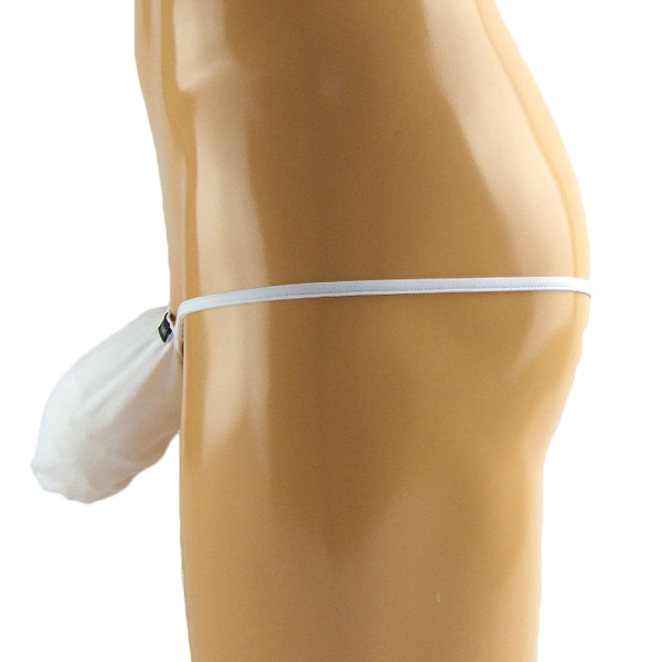 伸縮性が良く着け心地抜群の2wayストレッチを使用した前袋付きのメンズ用Gスト(白)。過激な見た目にドキドキせずにはいられない!男の魅力を最大限に引き立たせる大胆セクシーな日本製Gスト。