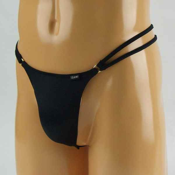 程よい露出とお洒落なダブルストリングデザインでセクシーな男を演出するハイレグ仕様のGスト(黒)。伸びの良い2wayストレッチ生地が優しく包み込む♪パートナーとの特別な日に穿きたい日本製のメンズ用Gストリング。