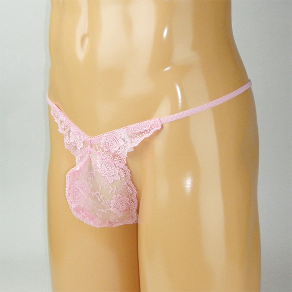 メンズ スケスケシースルーレース付き脇細Gスト ピンク L