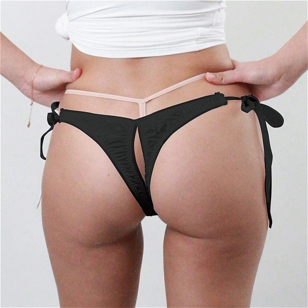 光沢が有り肌触りの良い生地レース付き脇ヒモ股ワレTB Lサイズ ブラック