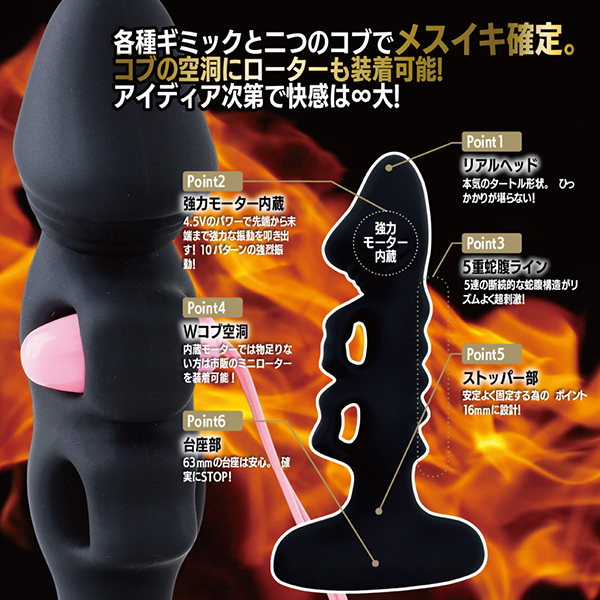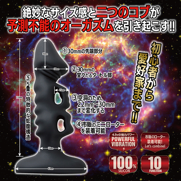 4.5Vの強力パワーと10ファンクションシステムを搭載♪100%シリコンの電動アナルプラグで、強力な振動と独特な形状が嫌というほど攻めまくる!アエナスキャメルは二重のコブが圧迫・刺激・強烈な振動を叩き出す♪絶妙な2つのコブが予測不能のオーガズムを存分にご堪能あれ。