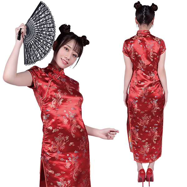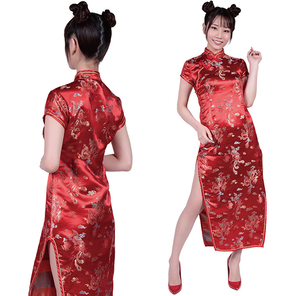 ロングのスリットからチラリと覗く美脚が魅力的なチャイナコスチュームです♪本格的なチャイナ・ガールに変身できるデザインで、長めのスリットが妖艶な雰囲気を演出!タイトなシルエットでボディラインもしっかりアピールでき、両サイドの長いスリットが脚を綺麗に魅せつつドレスの中も想像させるデザインとなっています♪襟元も生地の柄も伝統的なチャイナっぽさを踏襲した秀逸なデザインとなっています。