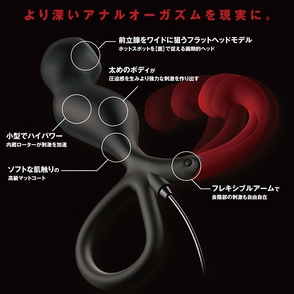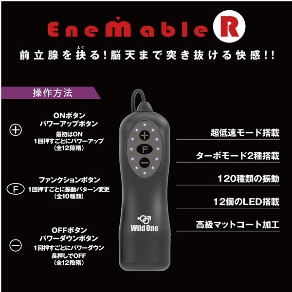 お手軽さが人気の前立腺開発グッズ「エネマブルR」に上級者タイプが新登場!3段階に可動するアームが自由自在に会陰部を刺激する♪12段階の強弱と10種類の振動パターンによる120種類の振動が前立腺をえぐる!初心者から上級者にまで愛される洗練されたフォルムが前立腺を的確に刺激しながら悶絶のドライオーガズムへと誘います。