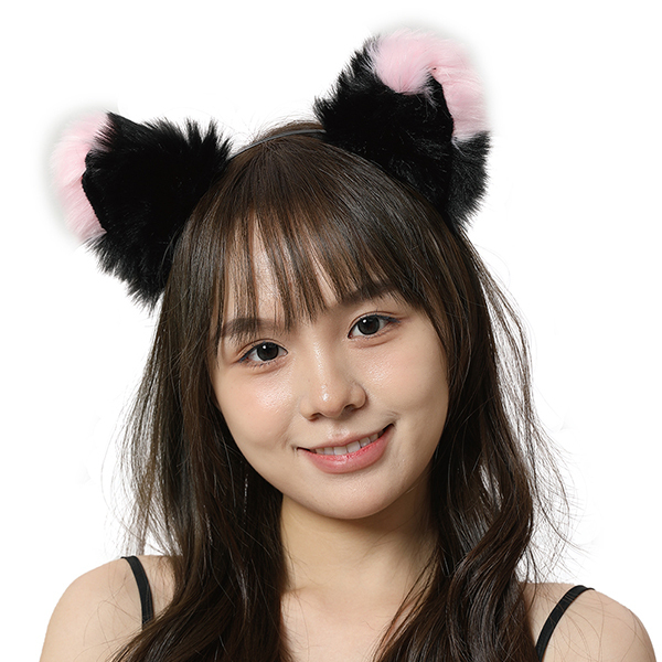 エロコス もふもふ耳カチューシャ (黒×ピンク)