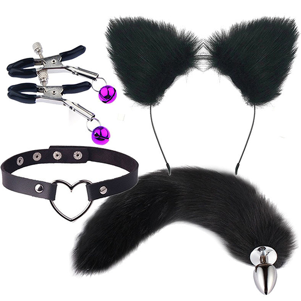 パッケージ:30.0×22.0×3.0cm 本体:耳カチューシャ約20cm×約20cm・首輪直径約12〜14cm・ップルクリップ(ハサミ口最大約1.6cm・長さ約5.6cm)・しっぽアナルプラグ直径約2.7cm・しっぽ長さ約40cm セット内容:耳カチューシャ、首輪、ニップルクリップ、しっぽアナルプラグ 原産国:中国 重量:本体135g