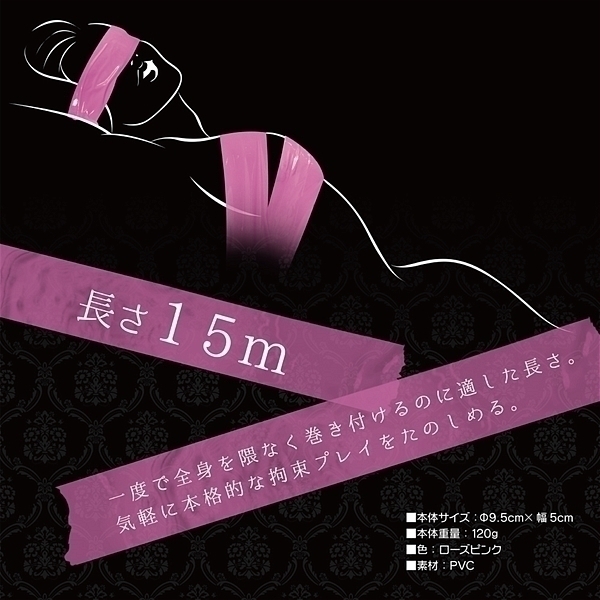 SMプレイの必須アイテム<ボンデージテープ>!気分で色を変えたいお客様の声にお応えし女体を彩る業界最多の7色をラインナップ!ノリを使わない万能テープで服や髪・肌を傷めず、お手軽カンタン拘束プレイ!濡れてもくっつく不思議な万能テープ科学の力でテープ同士が吸着。