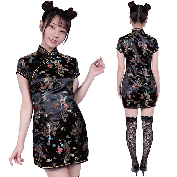 人気のミニチャイナにゆったりサイズが登場!両サイドのスリットでセクシーさが溢れ出るミニスカチャイナ。