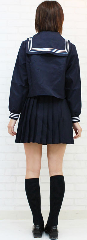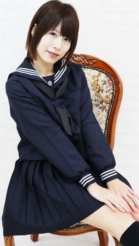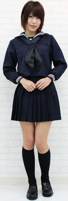 シックな黒スカーフが、落ち着いた雰囲気の長袖セーラー服。
