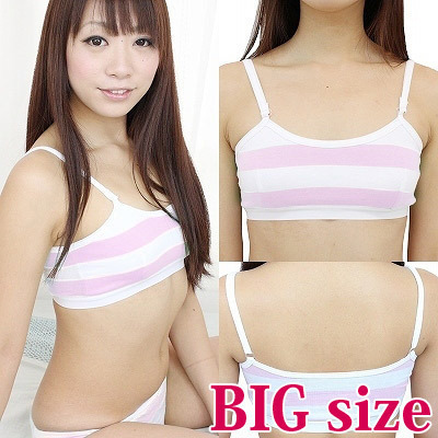 楽チン!かわいい!ピンク×ホワイトのしましま柄スポーツブラ(BIG)。