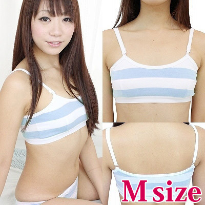 楽チン!かわいい!サックス×ホワイトのしましま柄スポーツブラ(M)。