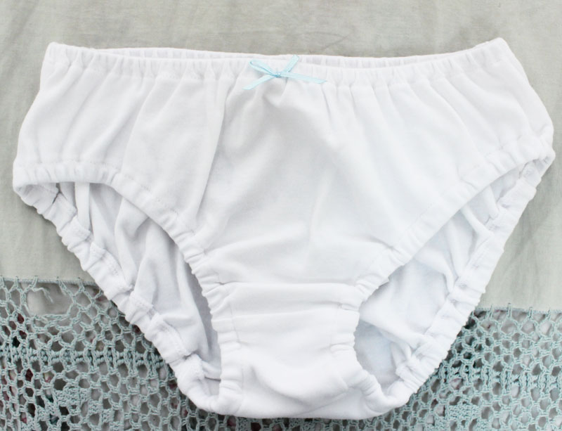 この素朴な雰囲気がたまりません!フロントにちょこんと付いた水色リボンがキュートな純白のロリパン単品(BIG)。