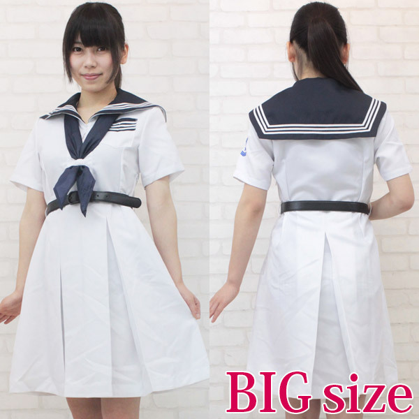 真っ白な半袖ワンピースで爽やかに!誰もが憧れるお嬢様学校風のセーラー服コスチューム(BIG)。