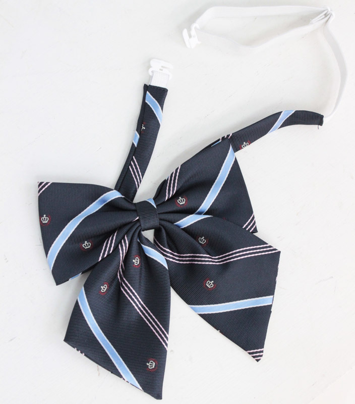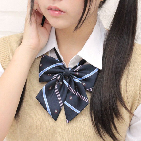 優等生のような雰囲気を漂わせるクールなデザインは、制服ブラウスとの相性バッチリ!ホックでカンタン装着できるスクールリボンです。