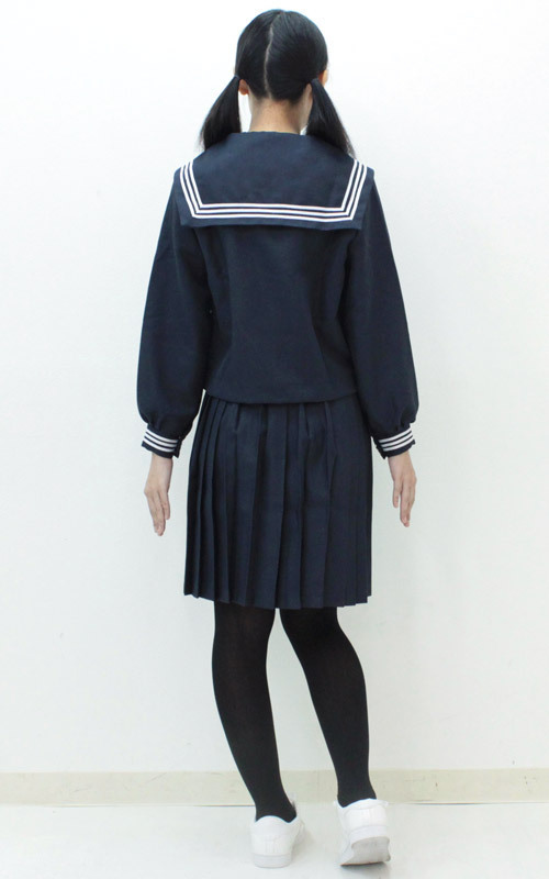 ネイビー×プリーツスカートがお嬢様風!シンプルが一番可愛いと思わせる、定番セーラー服の冬服コスチューム。