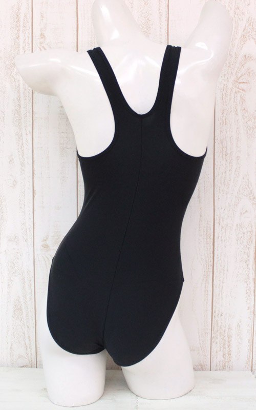 素朴なイメージのスク水も黒ならちょっぴりセクシー!胸パッド、さらに前身頃全面に裏地も付いた、本物志向の水着コスチュームです。