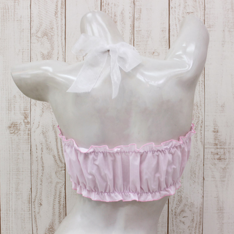 ●ストレッチゴムでギャザー寄せ・くしゅくしゅ感がラブリー●肩紐を隠せばセクシーなチューブブラに・結んでホルターにするとずり落ちません●フリル部分はしっかり縁処理済み。