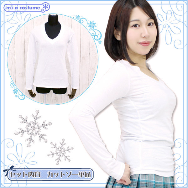 HOME > コスプレ衣装 > その他 > アメリカ製の高品質な綿100%レディースVネック長袖カットソー 白 Sサイズ