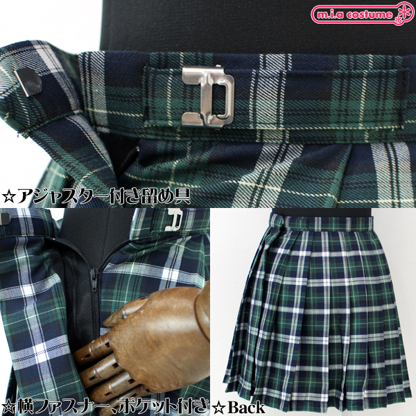 HOME > コスプレ衣装 > 小道具(ニーソックス・猫耳) > ポケット付きのチェック柄プリーツスカート単品 緑×白 Lサイズ