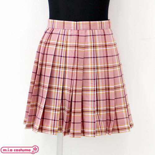 自分流にアレンジして制服コーデを楽しもう!ピンク×キャメルの可愛いチェック柄プリーツスカート単品。