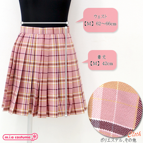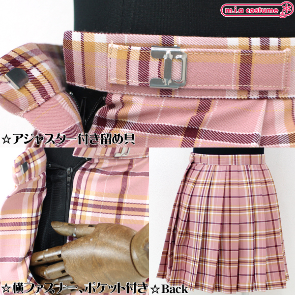 HOME > コスプレ衣装 > 小道具(ニーソックス・猫耳) > ポケット付きのチェック柄プリーツスカート単品 ピンク×キャメル Mサイズ