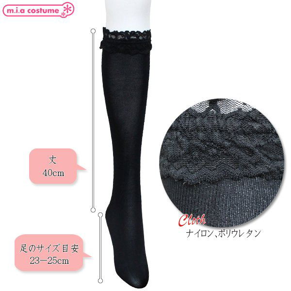HOME > コスプレ衣装 > 小道具(ニーソックス・猫耳) > ソフトナイロンレース付ハイソックス 黒 無地 40cm丈 23〜25cm
