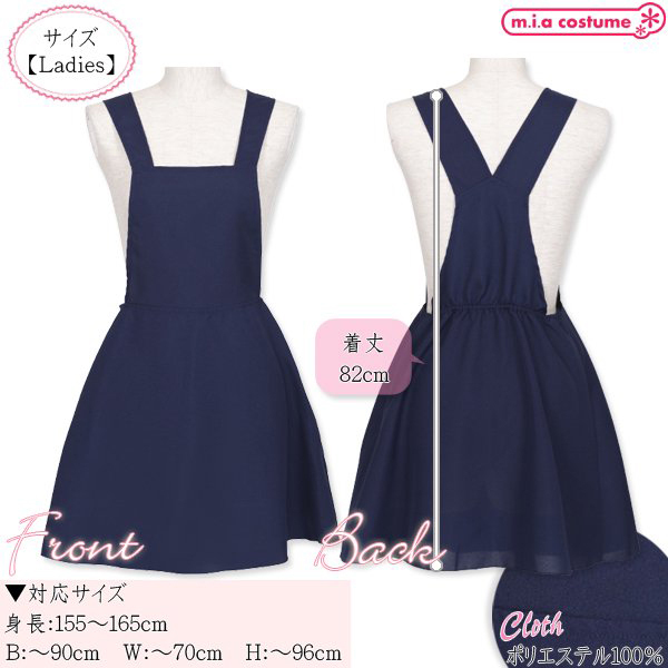 対応サイズ:身長155〜165cm・B〜90cm・W〜70cm・H〜96cm 実寸:着丈82cm セット内容:サロペット単品(左脇ファスナー) 素材:ポリエステル100% モデル身長155cm